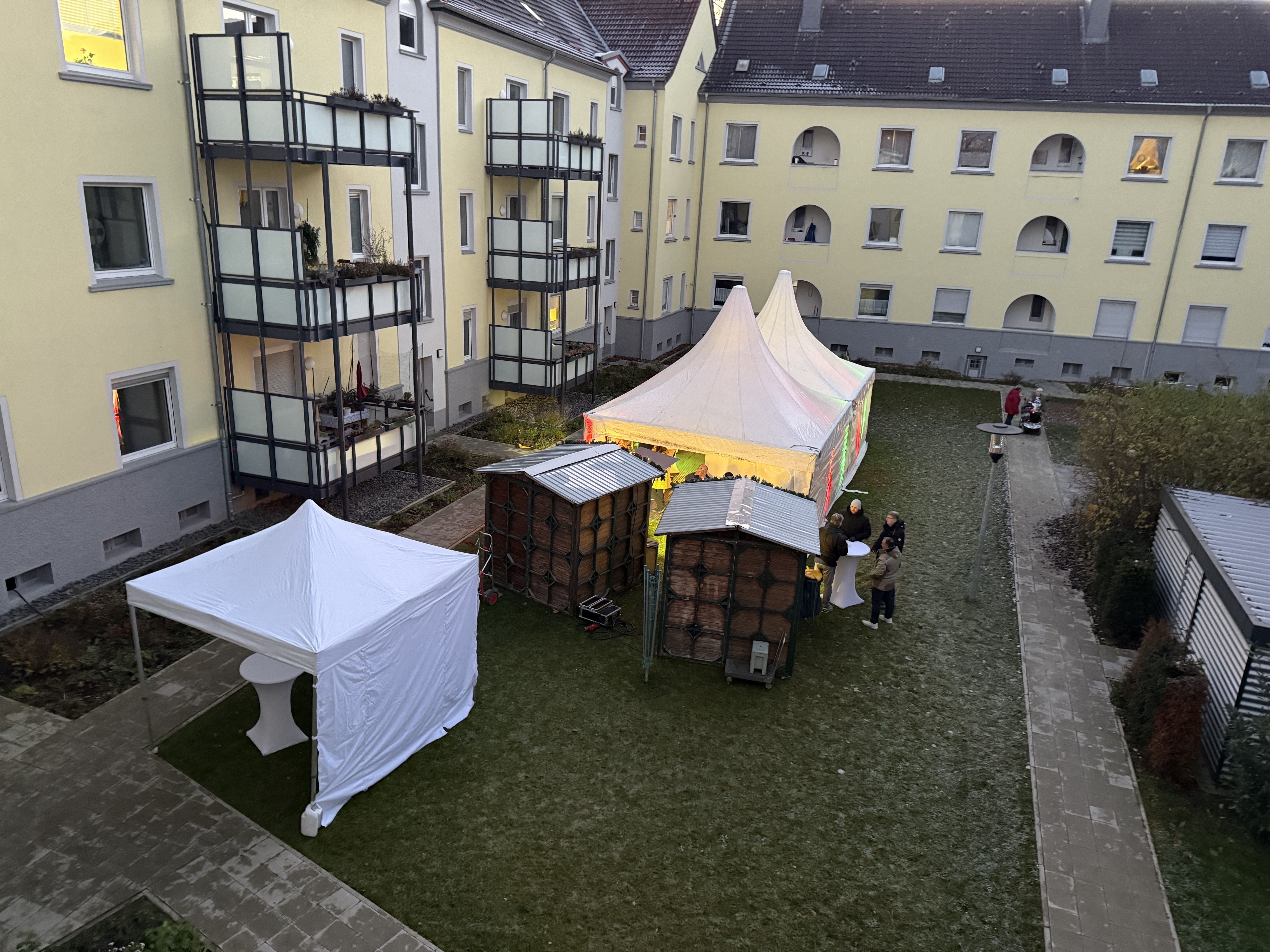 Begleitet von leiser Weihnachtsmusik entstand eine festliche Atmosphäre, die sofort zum Verweilen einlud. Viele Gäste kamen miteinander ins Gespräch, tauschten sich über die Neugestaltung des Innenhofs oder das Leben im Quartier aus und genossen das Zusammensein mit ihren Nachbar*innen sowie den Mitarbeiter*innen unserer Genossenschaft. Einige spielten gemeinsam Karten, andere spazierten gemütlich über den Hof und ließen den Abend in aller Ruhe auf sich wirken.