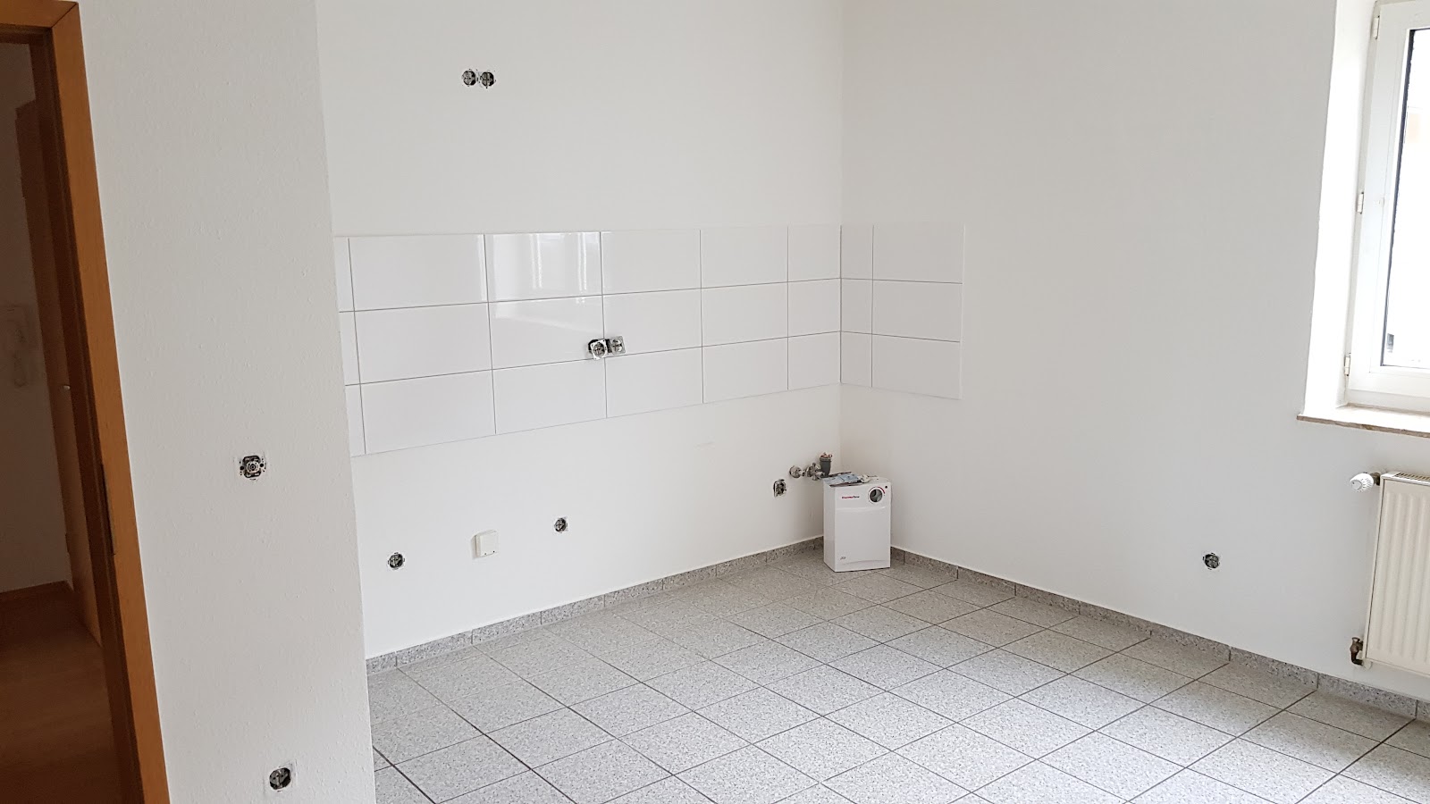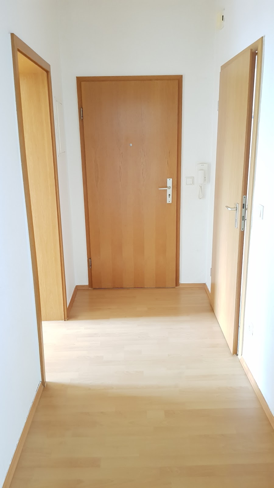 Die Wohnung verfügt über einen Laminatboden, Wandflächen mit Raufasertapete sowie eine Gegensprechanlage. Das Tageslichtbadezimmer ist mit einer bodengleichen Dusche ausgestattet.