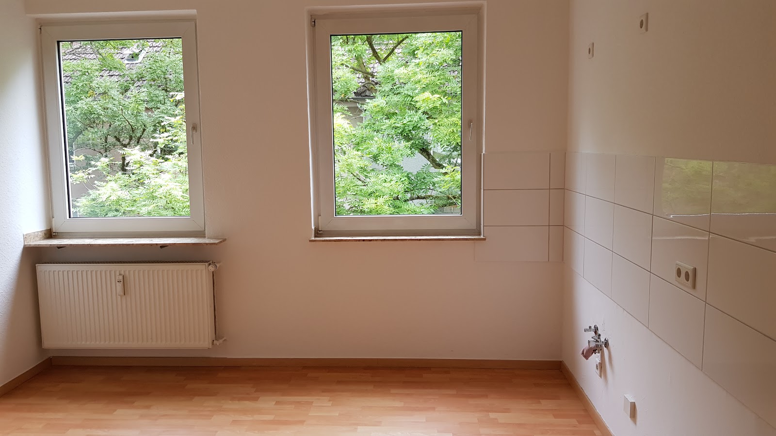 Die Wohnung ist mit einem Laminatboden ausgestattet. Das moderne Tageslichtbadezimmer verfügt über eine Badewanne.