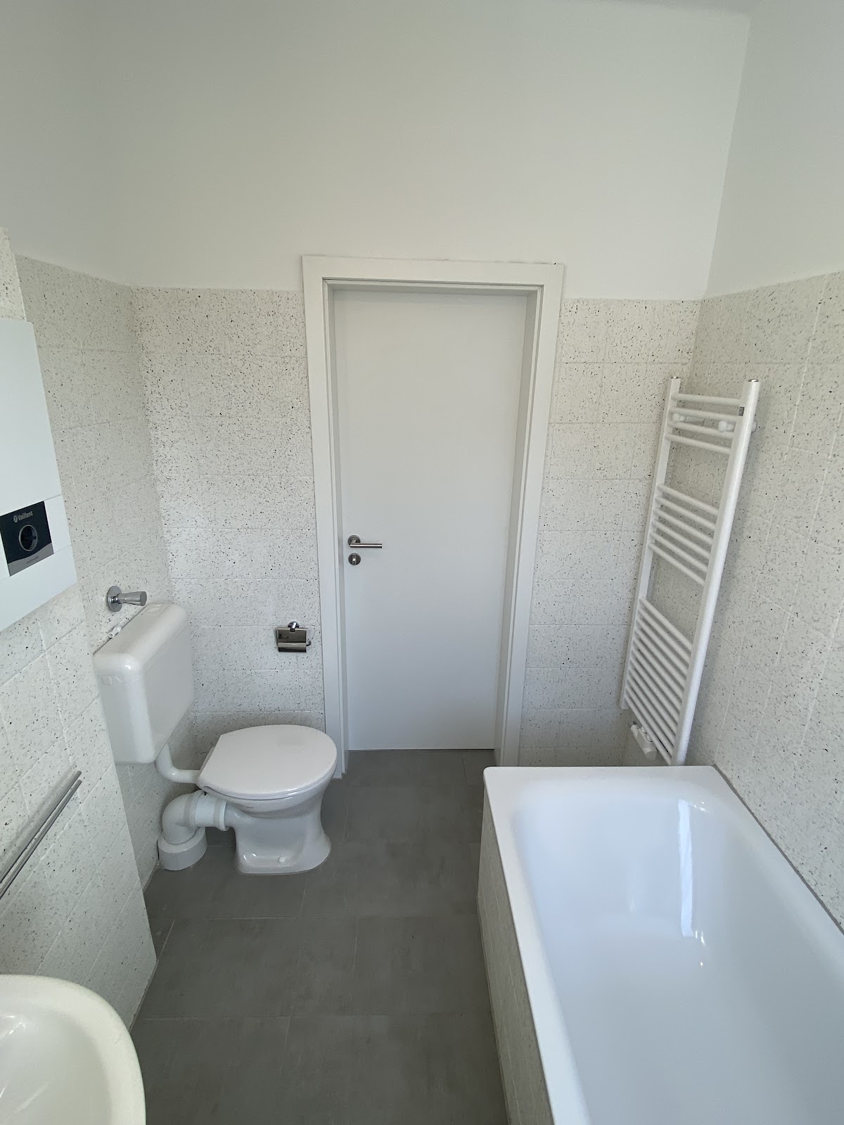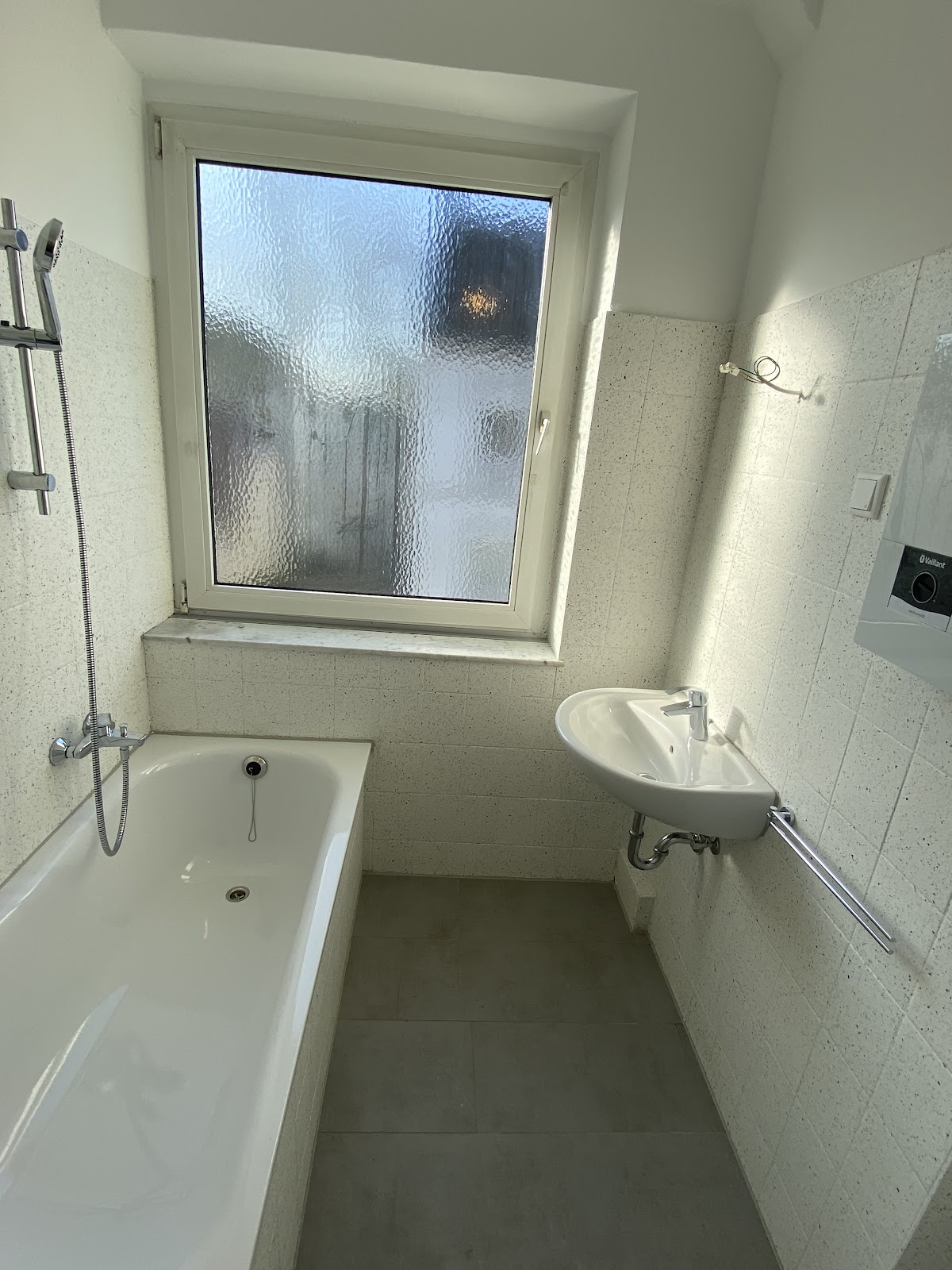 Die Wohnung wird aktuell vollständig modernisiert. Nach Fertigstellung verfügt die Wohnung über einen neuen, modernen Laminatboden. Im Rahmen der Modernisierung wird die Elektroinstallation in der Wohnung erneuert, außerdem wird das Badezimmer neugestaltet. Hier wird eine neue Badewanne eingesetzt, sowie die Bodenfliesen erneuert. Die Wandfliesen im Badezimmer werden beflockt. Ebenfalls werden die Heizkörper in der gesamten Wohnung Weiß lackiert. Die Innentüren der Wohnung werden durch Weiße, moderne Innentüren getaucht. Die Wandflächen werden mit Raufasertapete tapeziert. Wand-/ und Deckenflächen werden weiß gestrichen. Der Waschmaschinenstellplatz wird in der Waschküche installiert.