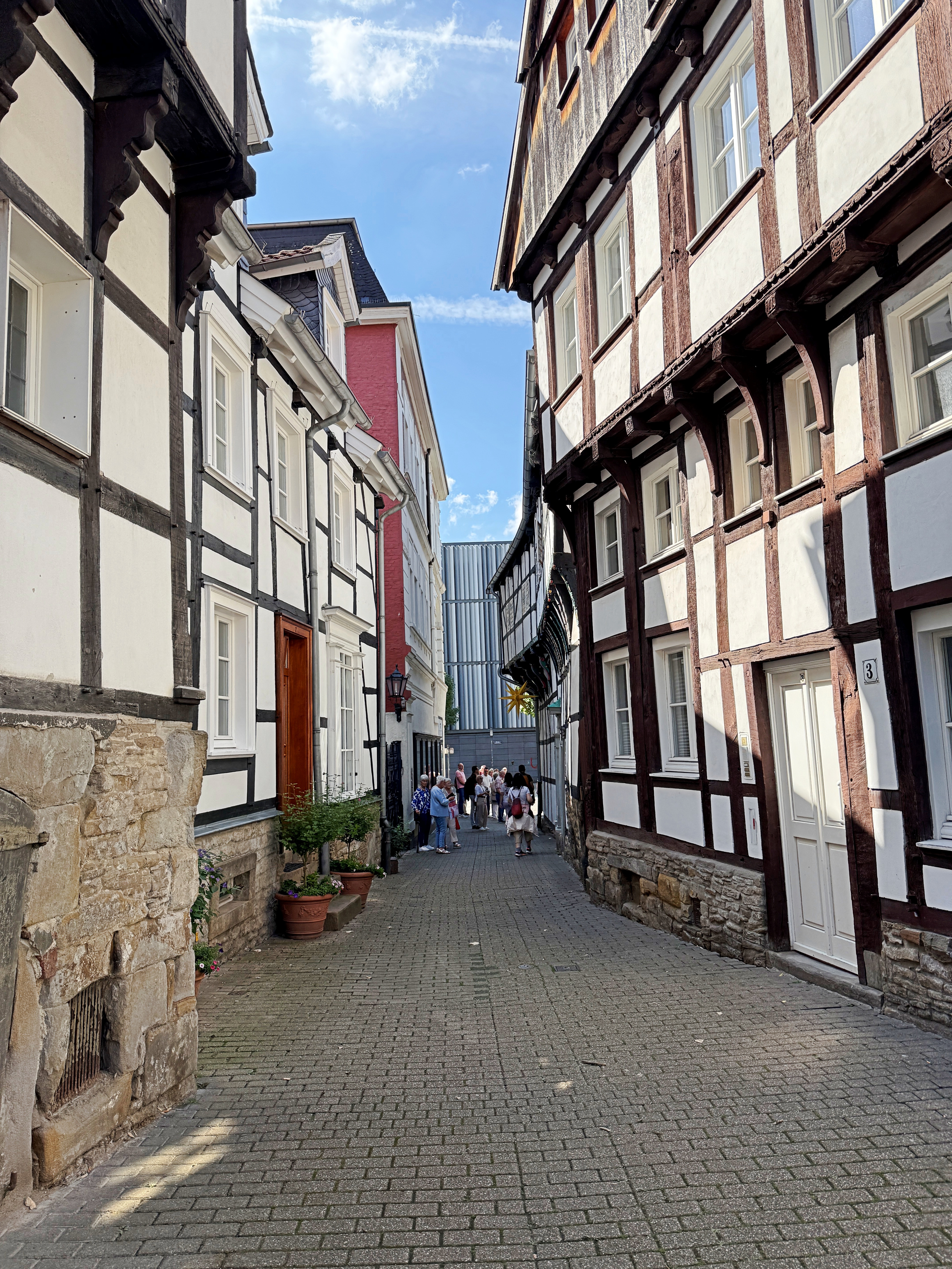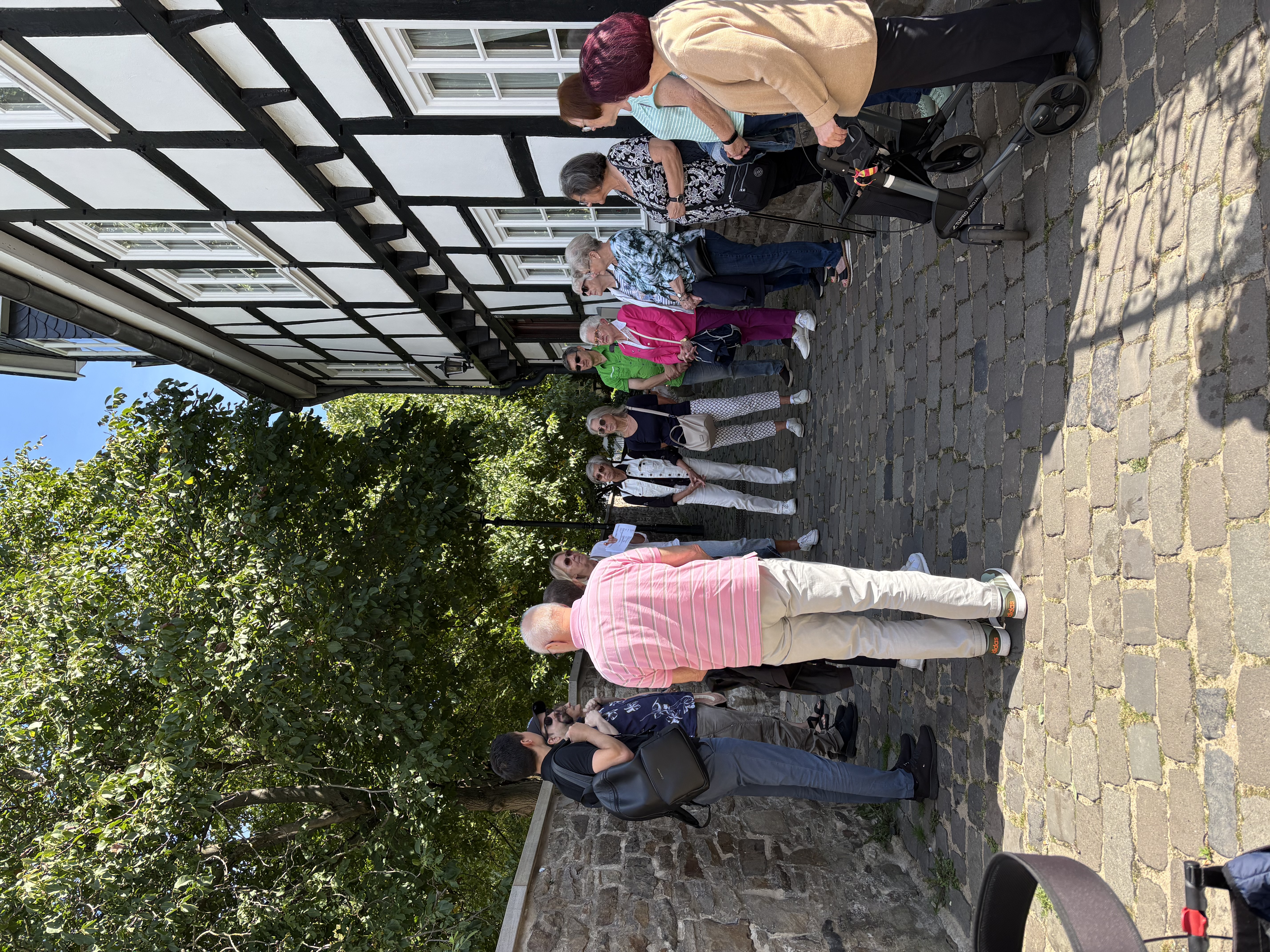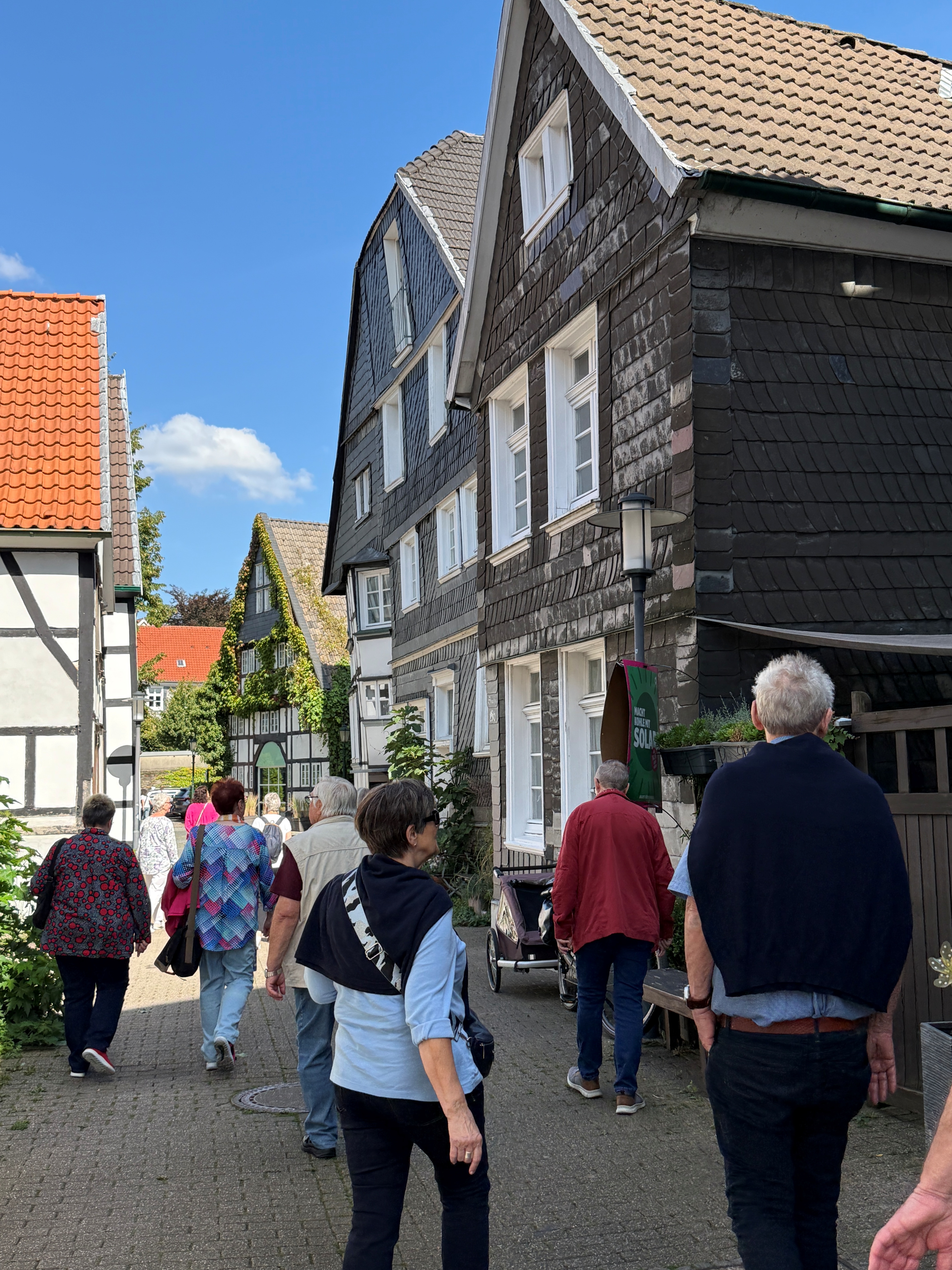 Den Auftakt bildete ein knapp 1,5-stündiger Rundgang durch die historische Altstadt, die mit ihren rund 150 liebevoll restaurierten Fachwerkhäusern vermutlich zu den schönsten in Nordrhein-Westfalen zählt. Beim Gang durch die verwinkelten Gassen begegnete man lebendiger Geschichte auf Schritt und Tritt: vom Bügeleisenhaus, über die kleine St.-Georgs-Kirche mit ihrem markanten schiefen Turm bis hin zu zahlreichen charmanten Fachwerkhäusern, die Geschichten aus vergangenen Jahrhunderten erzählen.